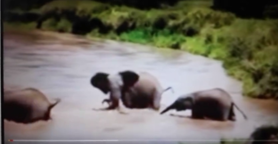 眼看小象被洪水冲走,大象神速反应